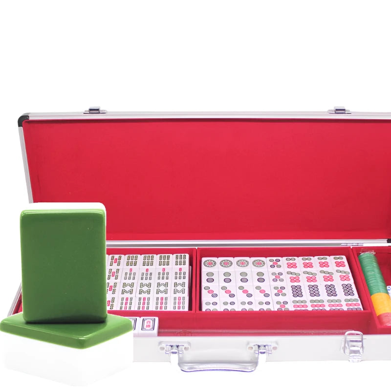 Taiwanese Mahjong Set - Tiles with Aluminum Case - Includes Wild Card Indicator, Betting Chips, and Dice - 31mmx23mmx19mm